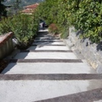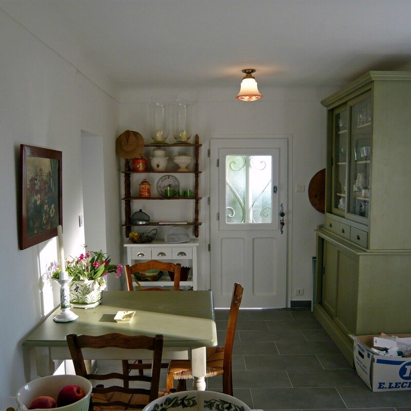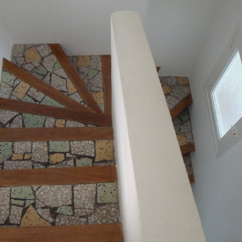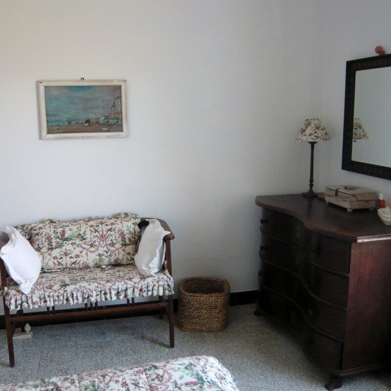 Erreichbar über den zwischen Oleander gelegenen Aufgang, befindet sich im Erdgeschoss der Eingangsbereich mit Gäste-WC (inklusive Waschmaschine), ein Wohnzimmer mit offenen Kamin, ein Sekretär sowie ein Esstisch für 4-8 Personen. Zudem gibt es eine voll ausgestattete Küche mit einem Essplatz für 2-4 Gäste.