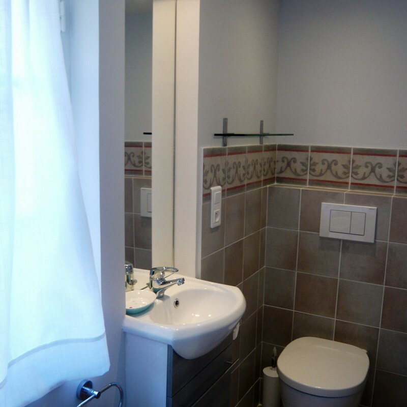 Das getrennt vom Haus gelegene Gartenzimmer ist unabhängig vom Haupthaus zu bewohnen. Neben einer eigene Klimaanlage bietet das ca. 20 qm große Zimmer ein ca. 180 cm großes Doppelbett, einen kleinen Holztisch, eine offene Kommode sowie einen praktischen Schrank. Das anliegende Duschbad verfügt neben einer Dusche über einen Waschtisch und einem WC.